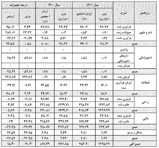 گزارش صادرات بخش کشاورزی و غذا منتهی به اردیبهشت ماه 1401